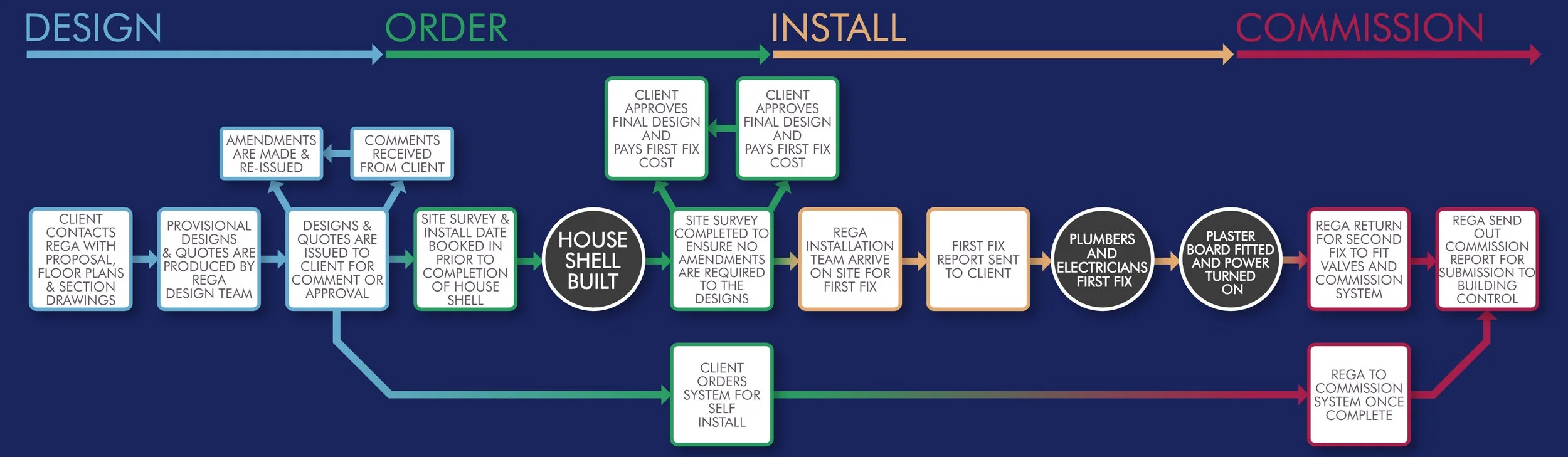 Highlighting the four key stages of our procedure to getting MVHR installed in your property