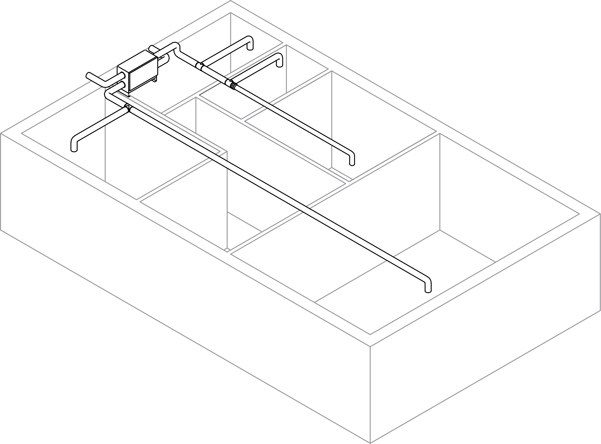Rectangular ducts for unobtrusive installation below ceilings or in walls.